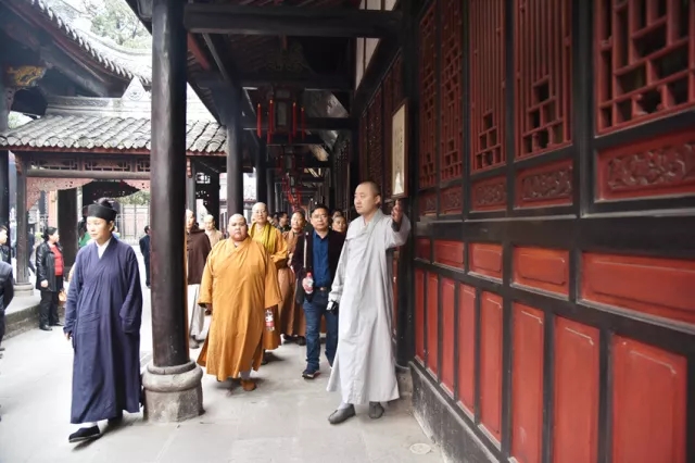 培训会结束后,文殊院客堂庆耀法师带领大家参观并介绍了院内消防系统及后勤监控系统,各道场负责人纷纷表示赞叹,询问并交流相关经验。